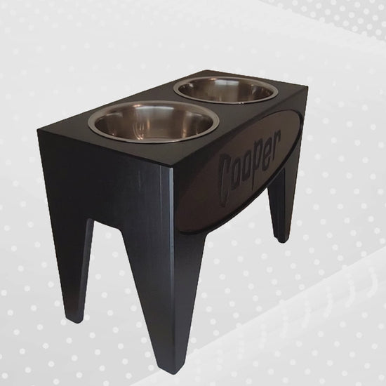 Personalized Elevated Dog Feeder Dish Stand, 15 Inches Tall, 2-Place, Black